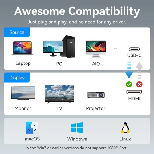 - Supports WinOS/macOS Dual System with Multi-Screen Display