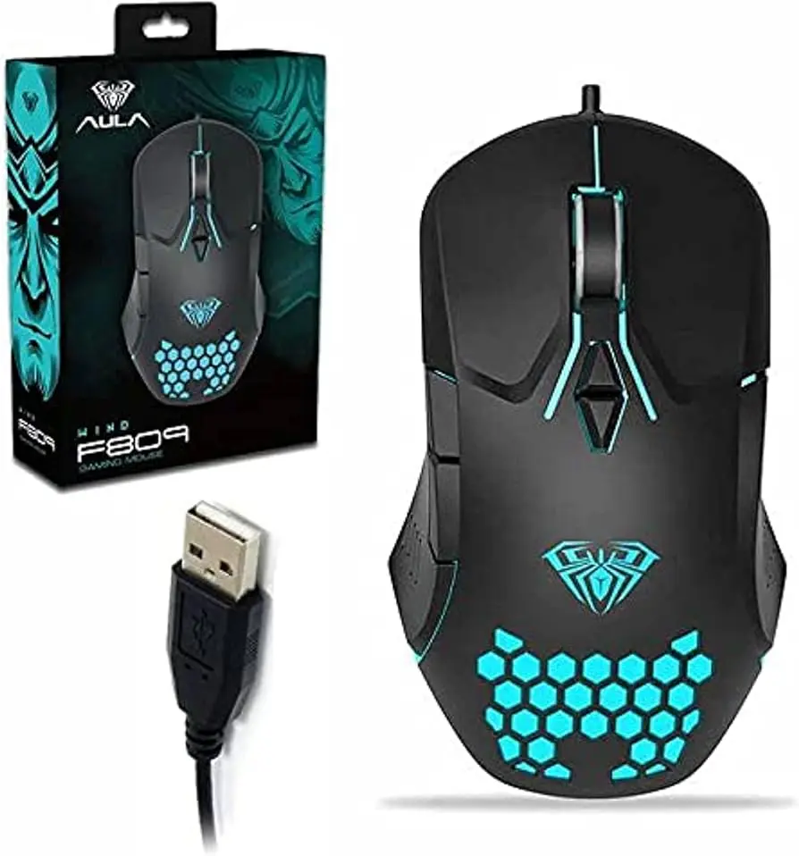 - AULA F809 Backlit Macro Programming Honeycomb Wired Gaming Mouse Black