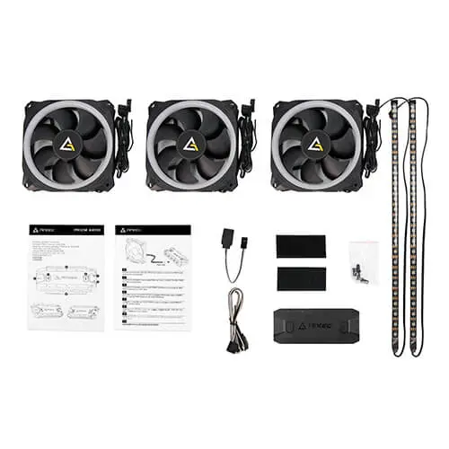 The Prizm ARGB series case fans come in 120 mm, and feature a dual-ring aperture design, which allows you to display RGB effects on both sides of the assembly. Enjoy nearly 16.8 million customized RGB colors and effects through compatibility with top-end motherboard manufacturers. Each LED bead can emit a variety of lighting colors to enrich your vision. There are up to 16.8 million colors and coordinate your own custom schemes for endless variety. Fan speed automatically adjusts according to temperature, effectively reducing system noise while achieving excellent heat dissipation. With the set of 3 fans, you are also getting 2 ARGB LED Lighting Strips and a Controller too to control the lighting system of your PC together.