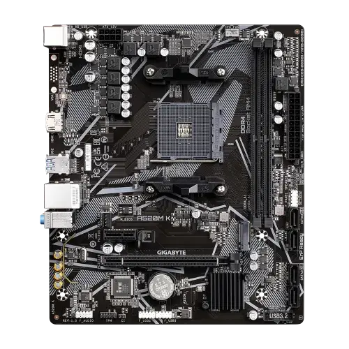 - GIGABYTE A520M K AM4 Micro ATX Motherboard