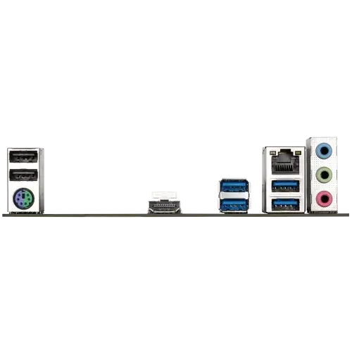 | Internal I/O Ports | 1 x 24-pin ATX main power connector 1 x 8-pin ATX 12V power connector 1 x CPU fan header 1 x system fan header 1 x M.2 Socket 3 connector 4 x SATA 6Gb/s connectors 1 x front panel header 1 x front panel audio header 1 x USB 3.2 Gen 1 header 2 x USB 2.0/1.1 headers 1 x speaker header 1 x Clear CMOS jumper 1 x chassis intrusion header Back Panel Connectors 1 x PS/2 keyboard/mouse port 1 x HDMI port 4 x USB 3.2 Gen 1 port 2 x USB 2.0/1.1 ports 1 x RJ-45 port 3 x audio jacks |