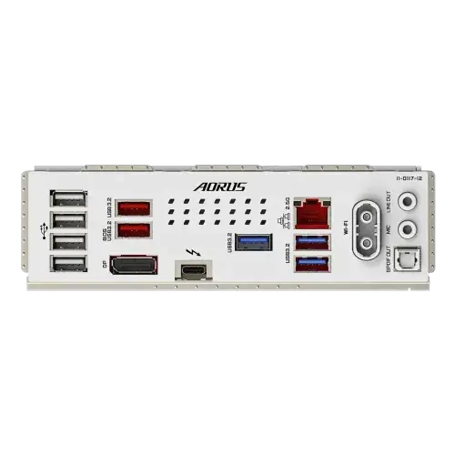 | Internal I/O Ports | 1 x 24-pin ATX main power connector 2 x 8-pin ATX 12V power connectors 1 x CPU fan header 1 x CPU fan/water cooling pump header 3 x system fan headers 1 x system fan/water cooling pump header 3 x addressable RGB Gen2 LED strip headers 1 x RGB LED strip header 4 x M.2 Socket 3 connectors 4 x SATA 6Gb/s connectors 1 x front panel header 1 x front panel audio header 1 x USB Type-C® header, with USB 3.2 Gen 2 support 1 x USB 3.2 Gen 1 header 2 x USB 2.0/1.1 headers 1 x Trusted Platform Module header (For the GC-TPM2.0 SPI/GC-TPM2.0 SPI 2.0/GC-TPM2.0 SPI V2 module only) 1 x HDMI port (Note) 1 x power button 1 x reset button 1 x Q-Flash Plus button 1 x reset jumper 1 x Clear CMOS jumper Back Panel Connectors 1 x Intel® Thunderbolt™ 4 connectors (USB Type-C® ports) 2 x USB 3.2 Gen 2 Type-A ports (red) 3 x USB 3.2 Gen 1 ports 4 x USB 2.0/1.1 ports 2 x antenna connectors (2T2R) 1 x DisplayPort (Note) 1 x RJ-45 port 1 x optical S/PDIF Out connector 2 x audio jacks |