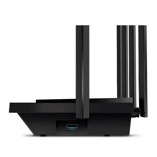 The TP-Link Archer AX73 AX5400 Dual-Band Gigabit Wi-Fi 6 Router includes four Gigabit Ethernet ports for wired connections to laptops, video game consoles, smart TVs, and other devices. You may share files and information with other networked devices by putting a flash drive into the router's USB 3.1 Gen 1 connection. The USB 3.1 Gen 1 interface has a maximum throughput of 5 Gb/s and is compatible with the USB 3.0 interface.