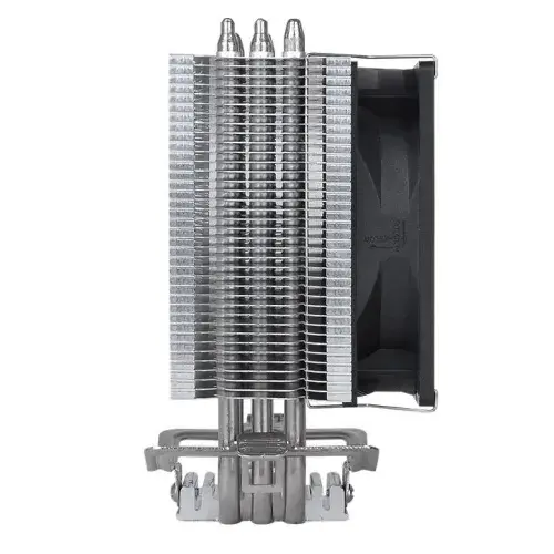 Thermaltake Contact 9 Air CPU Cooler It has 0.4mm thick aluminum fins with a 2.5mm air gap and 3 x 6mm solid copper heat pipes for optimal heat transmission. To guarantee quick and effective heat dissipation, the heat pipes are in constant direct contact with the CPU. The side flow configuration of the tower improves thermal performance as well.