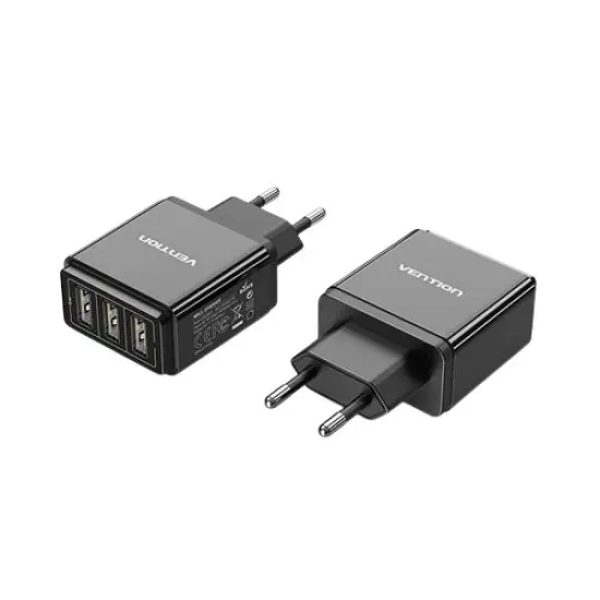 - VENTION DC5203-B 3-PORT 17W USB WALL CHARGER EU-PLUG BLACK