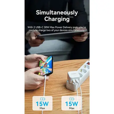 - VENTION FBPW0-EU 2-Port USB-C 35W GaN Charger - White