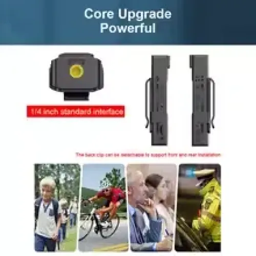 | Others | Camera Resolution: 500W pixel sensor Lens Angle: 120° wide-angle lens Night Vision: Infrared night vision supported Motion Detection: Supported Recording Format: WAV for audio; AVI for video Material: ABS plastic for durability WiFi connectivity (P2P) OTG connection to mobile phones Back clip design for easy attachment Supports C10 or higher high-speed TF cards Dimensions: 90 x 30 x 14 mm Weight: Approximately 35 grams |