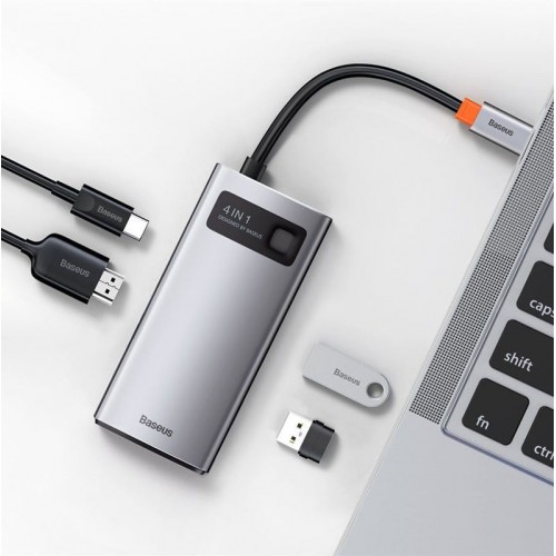 - Baseus CAHUB-CY0G 4 in 1 Hub Black (USB C to HDMI*1+USB 3.0*1+USB 2.0*1+PD*1) (100W)