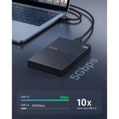 UGREEN CM471 (30725) 2.5-inch Hard Drive Enclosure is your reliable solution for efficient data backup and storage expansion. With its Micro-B 3.0 connecting port and included Micro USB 3.0 to USB 3.0 cable, this enclosure offers seamless connectivity to your 2.5" HDDs and SSDs. Installation is a breeze – no tools are required. Simply plug and play without the hassle of installing drivers or additional power supplies. Its portable ABS plastic design ensures durability whether it's sitting on your desk or traveling in your backpack.