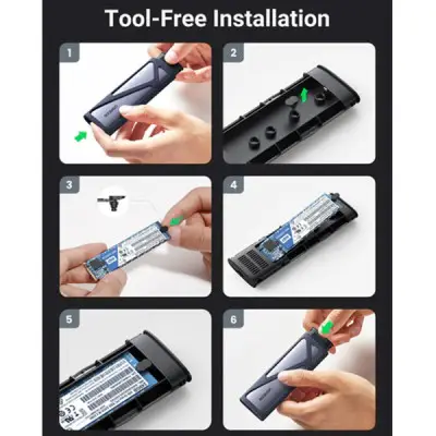 The UGREEN CM400 M.2 SATA and NVMe SSD Enclosure is designed to house an M-Key & B+M Keys and size 2230, 2242, 2260, 2280 NVMe PCIe SSD and M.2 SATA SSD, which turns it into a portable USB 3.2 external drive for maximum utilization. Tool-free and no driver needed, just plug and play. Ideal for transferring files, backing up data, reusing old M.2 SSD, and expanding storage space. The USB 3.2 interface has UASP and TRIM, allowing it to perform 70% faster read speeds and 40% faster write speeds than the standard USB 3.1 interface. This UGREEN CM400 M.2 SSD case includes the newest USB 3.2 Gen 2 and PCIe 3.0 interfaces, allowing for a data transmission rate of up to 10Gbp. It is capable of transferring 1GB of data in 1 second. The SSD Enclosure Operating Display You can easily learn the operational status of this M2 Case thanks to the white LED indication. Flashing indicates that data transmission is being processed. The UGREEN SSD Enclosure comes with Driver & Tool-Free Free There is no need for a driver. To secure your M.2 SSD drives to the board, use the provided rubber fasteners. The UGREEN CM400 M.2 SATA and NVMe SSD Enclosure offer a 1-year warranty.
