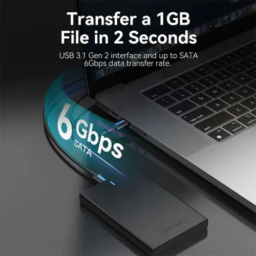 The Vention KPBB0 Enclosure is a precision-engineered external storage solution designed for users seeking high-speed performance, wide compatibility, and superior data protection. The Vention KPBB0 2.5 Inch Hard Drive Enclosure features a robust SATA 3.0 interface that supports lightning-fast data transfer speeds of up to 6 Gbps, enabling seamless transfers such as moving a 1GB file in just 2 seconds. Supporting up to 6TB of storage, this enclosure is ideal for handling large files, backups, and multimedia content. The advanced USB 3.1 Gen2 Type-C interface with nickel-plated connectors offers stable, high-speed connectivity compatible with most modern devices. Equipped with UASP and TRIM acceleration protocols, the Vention KPBB0 SATA HDD Enclosure enhances performance, reduces CPU load, and minimizes latency for faster read and write operations. An intelligent auto-sleep function activates after 3 minutes of inactivity, conserving energy and prolonging the life of the hard drive. The enclosure’s durable black ABS shell provides shock resistance and a sleek, professional look, while its compact 2.5-inch form factor ensures easy portability. Packaged in an attractive color box and bundled with a quality data cable, the Vention KPBB0 Hard Drive Enclosure is ready to use straight out of the box. Whether for work, backups, or media storage, the Vention KPBB0 Enclosure delivers reliable performance, fast speeds, and strong build quality, making it an excellent choice for anyone in need of dependable external storage.
