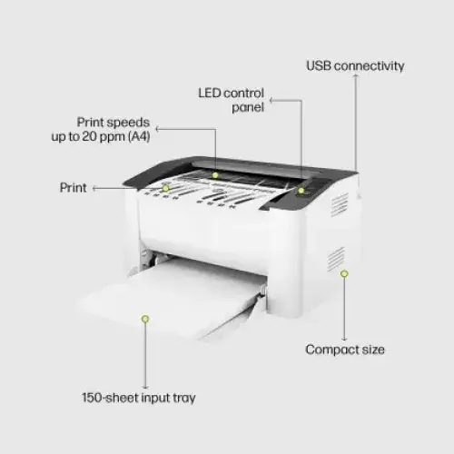 This HP Laser 1008a printer increases your productivity by allowing you to manage huge projects efficiently and maintaining excellent uptime, all while printing at high speeds of up to 20 pages per minute.