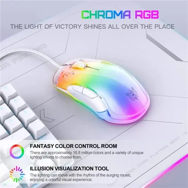 - Onikuma CW925 RGB Backlit Wired Gaming Mouse, White