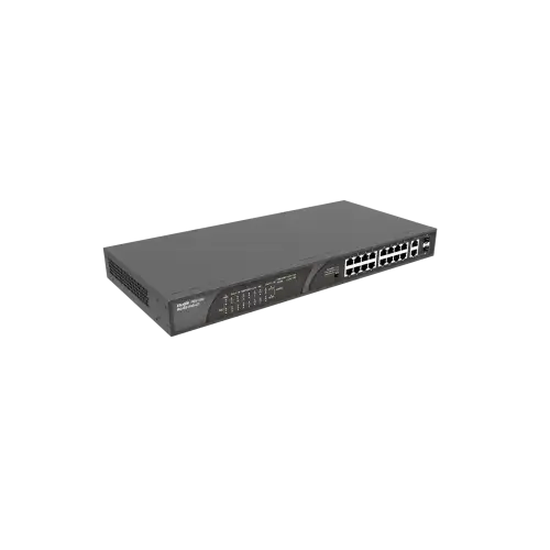 | Interface | 16x 10/100Base-X PoE+ ports 2x 10/100/1000Base-T ports |