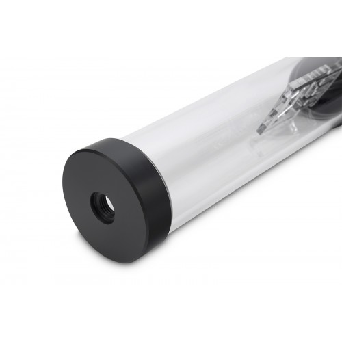 The new EK-RES X3 reservoir comes from EK CSQ design line is an improved version of renown EK-Multioption RES X2 reservoirs which is released three years ago. It is configuration for easier and more straightforward fitting configuration and tube routing. Improvements have been made on the reservoir's bottom terminal which has been optimized for best flow. This Reservoir is manufactured of premium quality 60mm acrylic tube and POM Acetal end caps. The sealing is performed by quality EPDM rubber washers. It is configured with Installation height: 250mm, Diameter: 60mm, Capacity: ~440ml and Weight (netto): 370g. Vortex ouccurance has also been diminished by the use of enclosed anti-cyclone as well as additional PE foam. This latest RES X3 comes with a pair of EK design reservoir holders using adjustable fastening force controlled by enclosed Allen key. The EKWB EK-RES X3 250 Reservoir has 02 years of warranty.