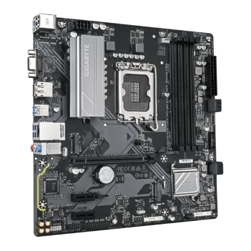 The GIGABYTE B760M D3HP DDR5 Micro ATX Motherboard is an efficient platform for customers to construct powerful PCs with the newest Intel® Core™ CPUs. This GIGABYTE B760M D3HP DDR5 Motherboard supports 14th, 13th, and 12th Gen Intel® Core™, Pentium® Gold, and Celeron® CPUs. It utilizes the efficient Intel® B760 Express Chipset for high performance and hardware compatibility. With four DDR5 DIMM slots, it can accommodate up to 256 GB of system memory and achieve speeds of up to 5600 MT/s with high-end CPUs. The dual-channel memory design allows for quicker data transfer, and users may make use of XMP functionality to maximize overclocking. It has onboard Intel® UHD Graphics compatibility and is a fully integrated GIGABYTE B760M D3HP DDR5 system that supports triple-display output via D-Sub, HDMI 2.1, and DisplayPort 1.2, all of which can produce 4K images. For storage, this GIGABYTE Motherboard has two PCIe 4.0 x4 M.2 connections and four SATA 6Gb/s ports that enable RAID 0, 1, 5, and 10 for customizable storage configurations. A PCIe 4.0 x16 slot for graphics cards or NVMe SSDs allows for expansion, as do two PCIe 3.0 x1 slots for extra devices. A Realtek® 1GbE LAN chip ensures reliable networking, while the Realtek® High Definition Audio CODEC supports 7.1-channel surround sound and S/PDIF Out. The motherboard also has a robust internal I/O configuration, which includes fan headers, LED headers, and extensive USB connectivity, such as USB 3.2 Gen 1 Type-C®, USB 3.2 Gen 1, and USB 2.0, to ensure current compatibility. Smart Fan 6 technology monitors temperature with hybrid fan headers and the FAN STOP feature, ensuring silent and economical operation. Q-Flash Plus allows users to upgrade BIOS without installing a CPU or RAM, which improves usability. The GIGABYTE B760M D3HP DDR5 Micro ATX Motherboard is powered by a long-lasting Hybrid 4+1+1 Phase Digital VRM Solution, which provides consistent and clean power for steady performance. This Micro ATX form factor motherboard, measuring 24.4cm x 24.4cm, is perfect for tiny configurations while also fully supporting Windows 10 and 11 64-bit PCs. The GIGABYTE B760M D3HP DDR5 Motherboard is an excellent choice for gaming, productivity, and future-ready PC setups, thanks to its powerful features, contemporary connections, and extensive CPU and memory compatibility.